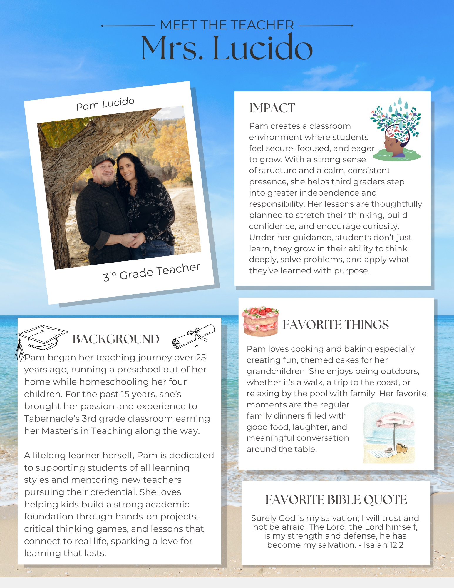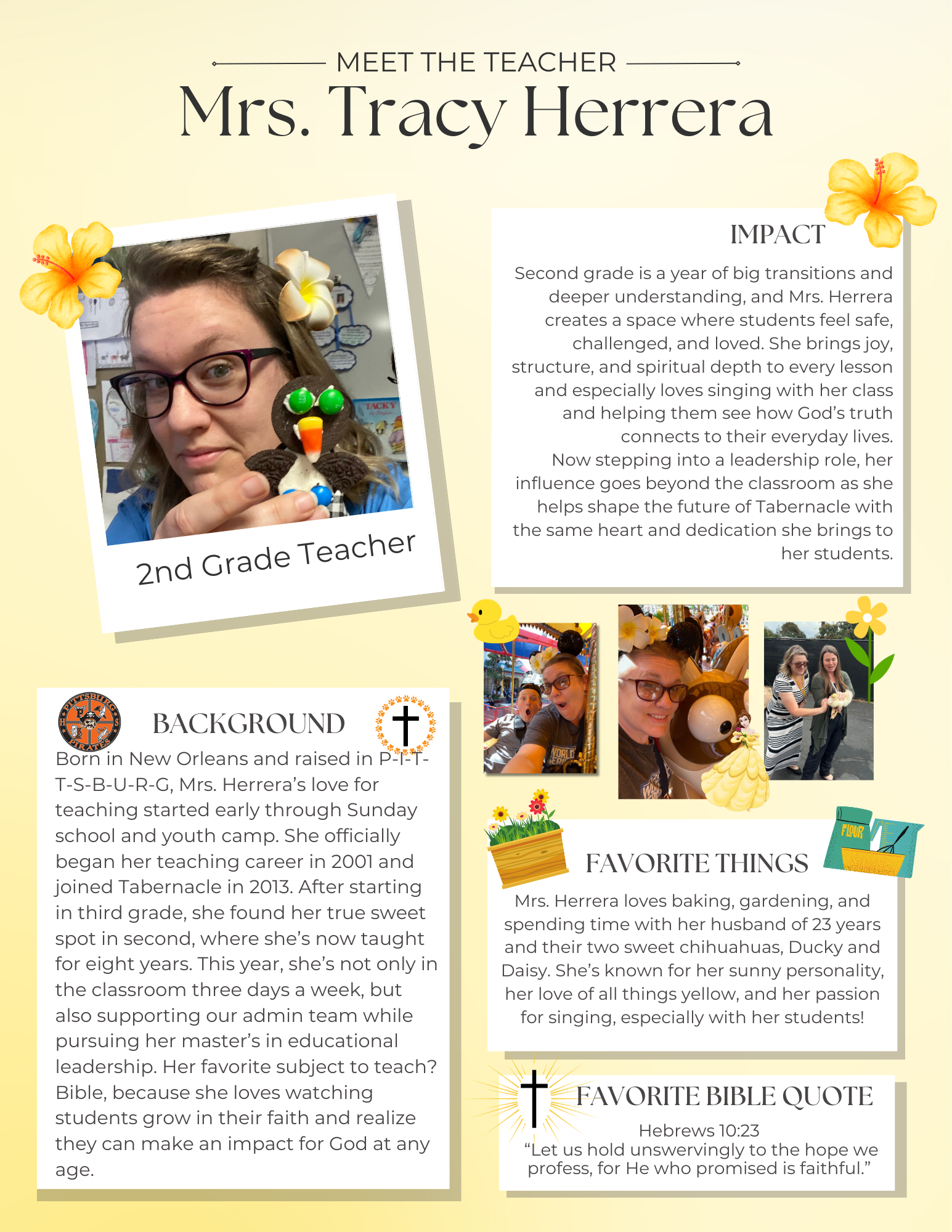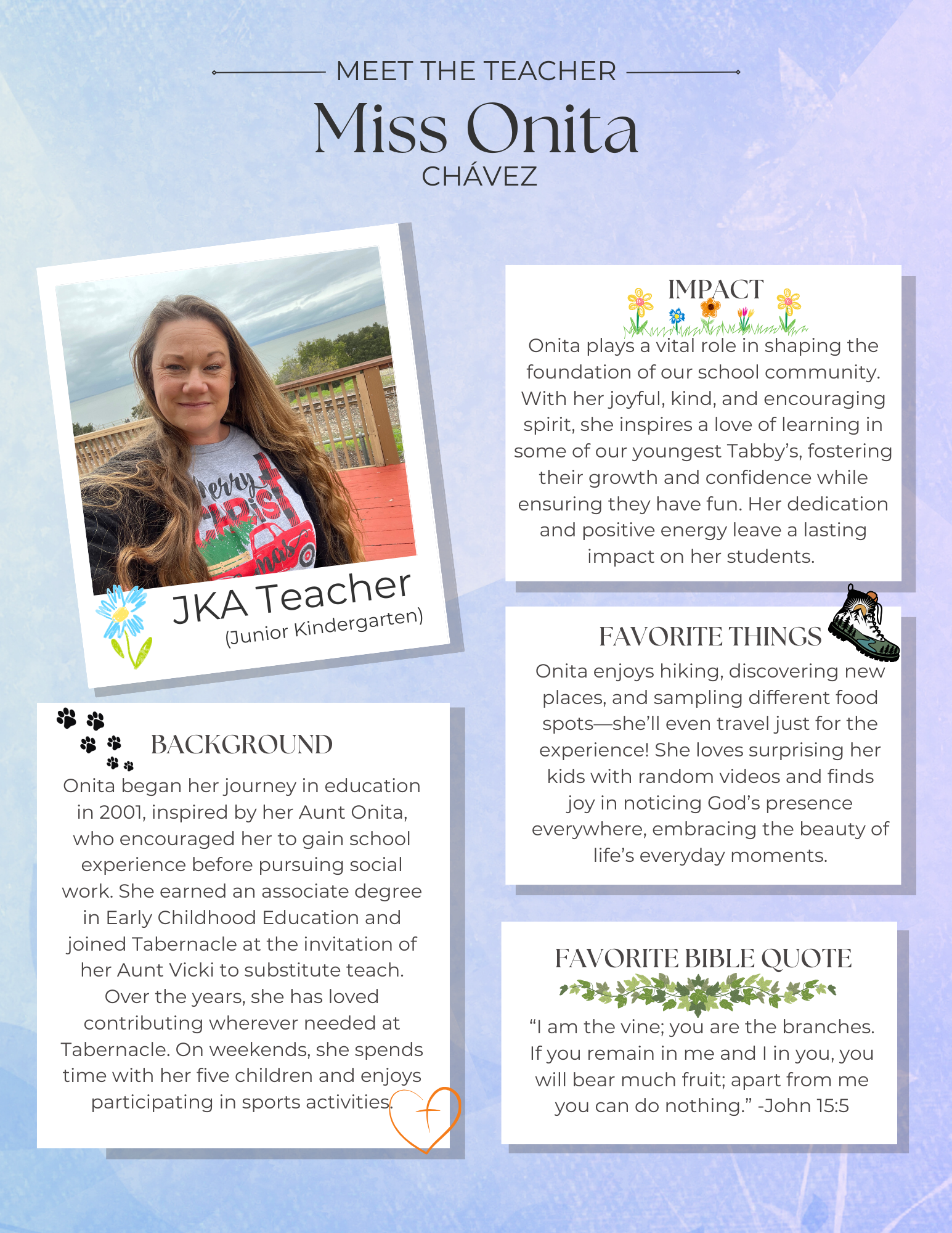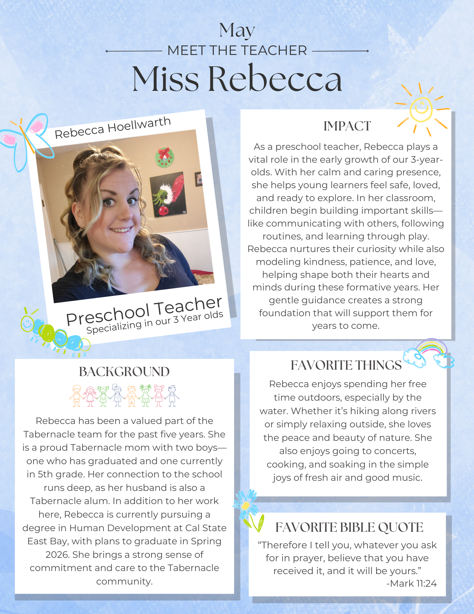 At Tabernacle School our dedicated staff inspires students to be faithful followers of Jesus, academic achievers, life-long learners, and citizens of character in all aspects of life.