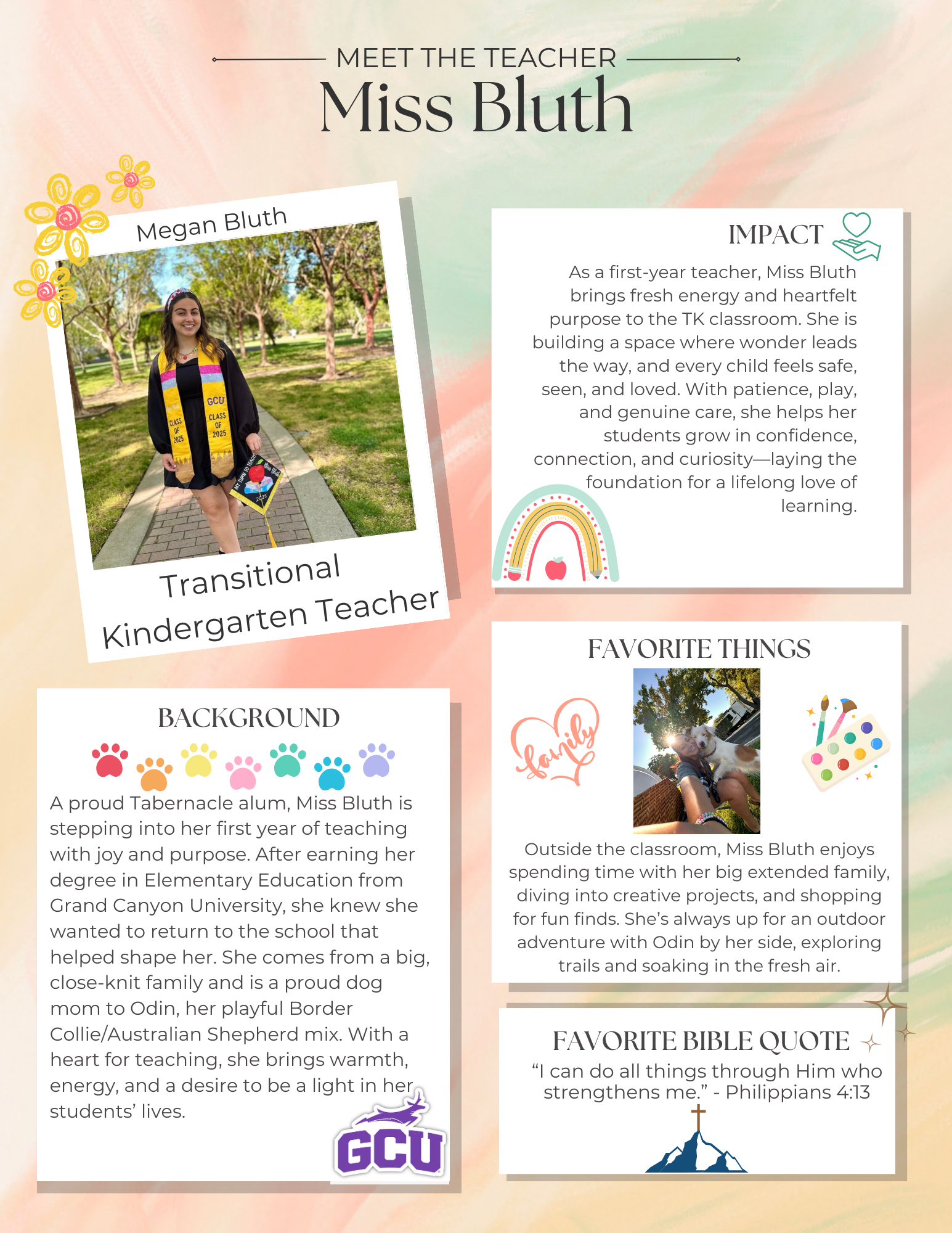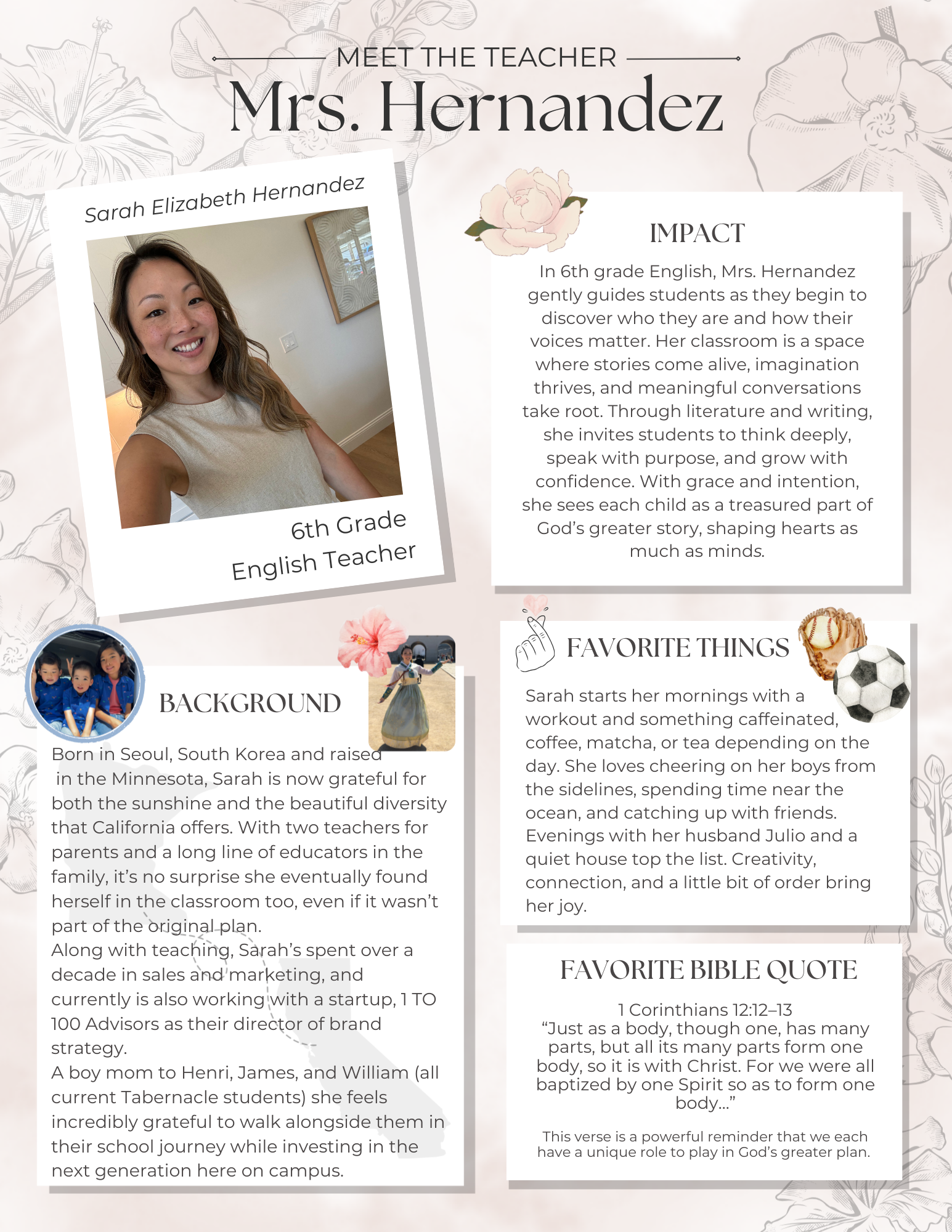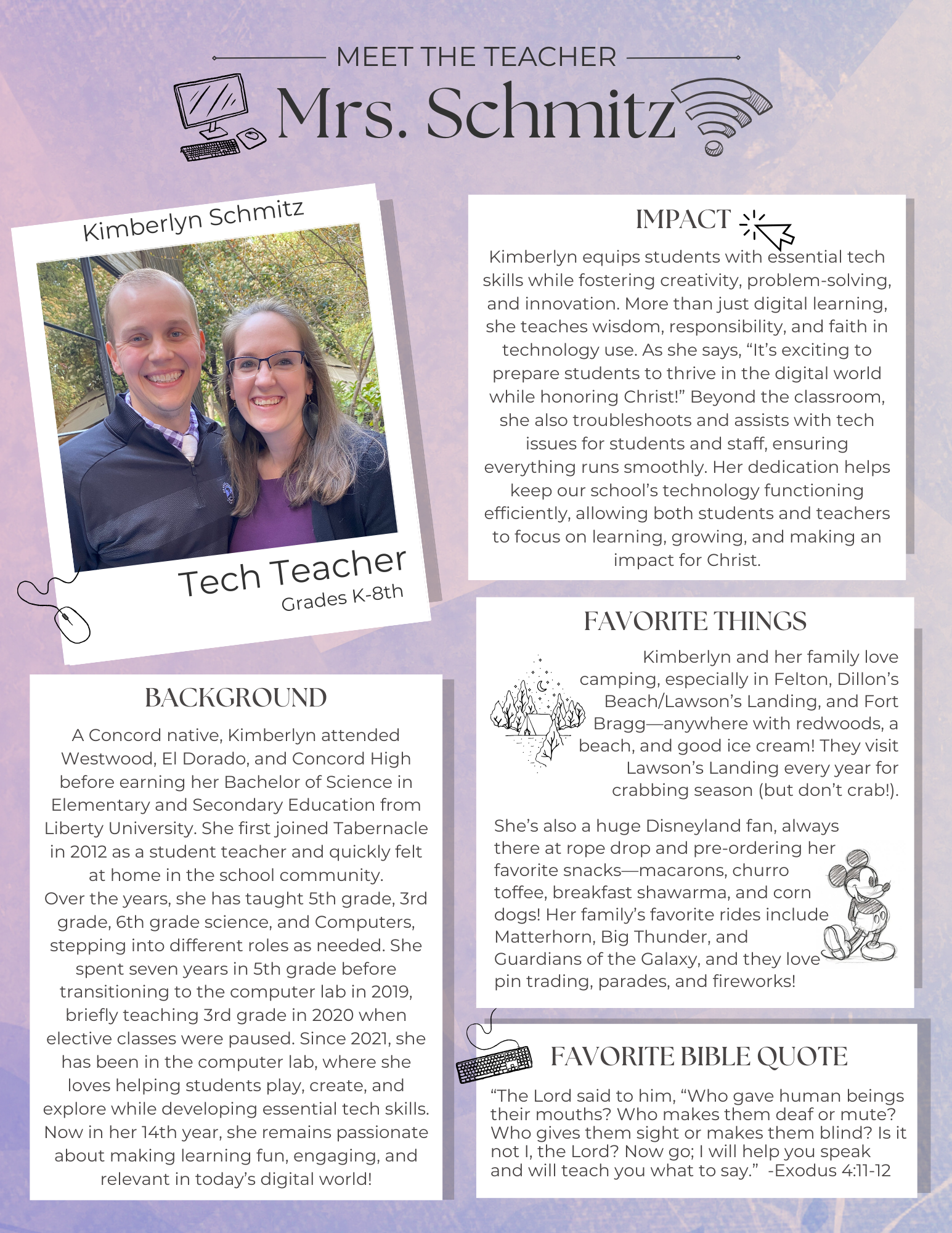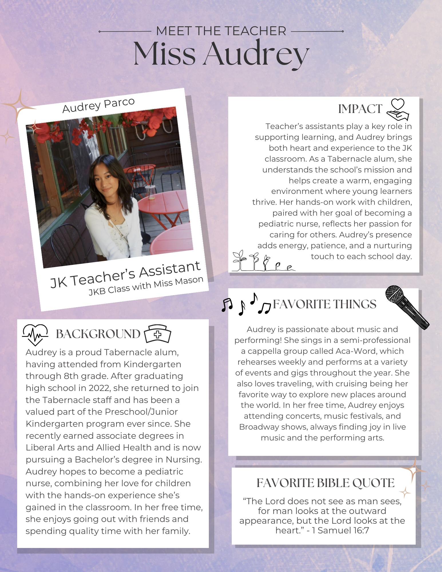 At Tabernacle School our dedicated staff inspires students to be faithful followers of Jesus, academic achievers, life-long learners, and citizens of character in all aspects of life.